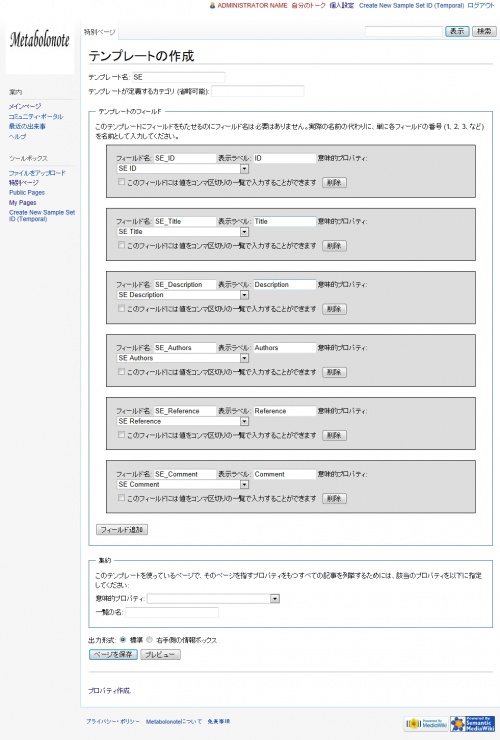 | テンプレート名 | フィールド名 | 表示ラベル | 意味的プロパティ |